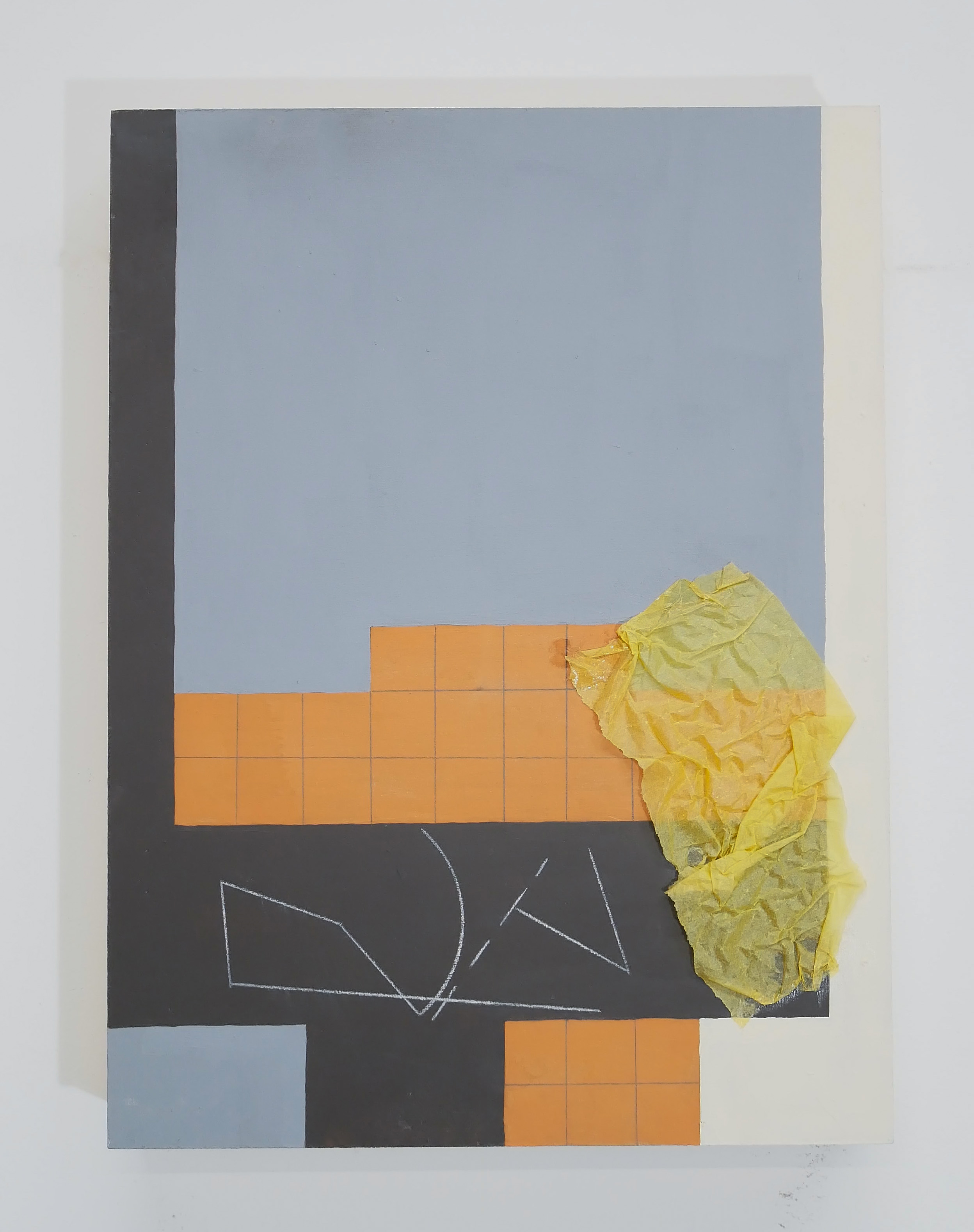 Acrylic, pencil, tracing paper on panel.